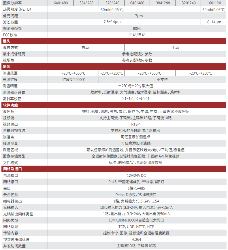 傳輸內(nèi)容 控制命令、圖像、視頻流和全輻射溫度數(shù)據(jù)